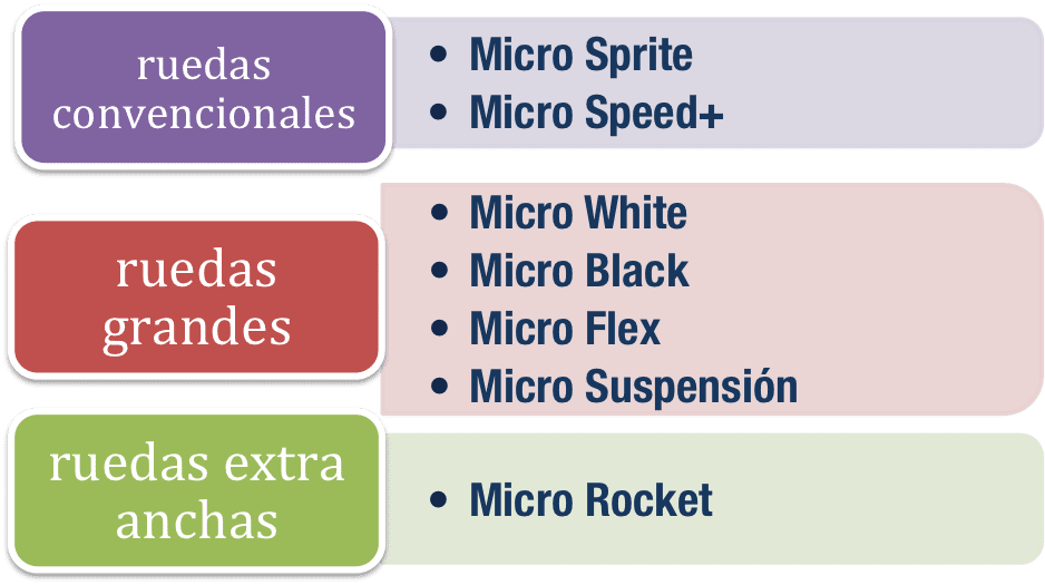 - patinetes con las ruedas convencionales (100-145 mm)